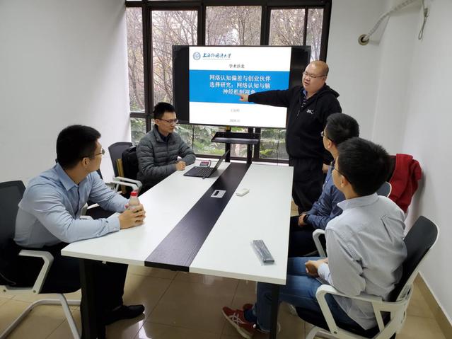 本次学术沙龙活动中,王海峰副教授系统介绍了该项目的研究进展与阶段性成果。在“大众创业、万众创新”的时代浪潮下,每年数以百万计的企业进入市场搏杀。然而,一时的创新优势并不能确保企业的生存与发展,大多凭着单一新产品或新服务进入市场的创新企业都难免惨遭“一波死”。对于绝大多数创业者而言,如何成功选择创业伙伴,构建高效的创业团队,度过“一波死”困局是亟待解决的关键问题。基于网络认知与脑神经机制的视角,本项目采用元分析法、案例研究法、系统仿真法、主观问卷法、档案数据研究、行为学实验与脑神经实验等研究方法,研究有无网络认知偏差对创业伙伴选择的影响,探究情感激发下不同网络认知偏差对不同价值导向的创业伙伴选择的影响,基于双加工理论构建网络认知偏差影响创业伙伴选择的理论模型,并从脑神经机制的视角打开网络认知偏差影响创业伙伴选择的“黑箱”。本项目是对神经管理学这个新兴交叉科学领域的前瞻性探索,有重要的科学价值和实践意义。目前,该项目进展顺利,已在SSCI/SCI发表一区论文一篇,出版专著一本。预计还能发表多篇SSCI/SCI论文。